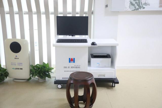 在大厅入口处,放置了一个中医体质识别仪,居民可以进行自助体质识别。通过收集居民的脸和舌像,扫描分析,模拟中医传统的“咨询”过程,可以快速生成体质识别结果报告,并根据每个居民的具体体质给出相应的健康护理建议。