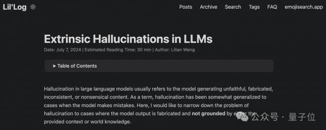 她之前提出的建议LLM 外在幻觉(extrinsic hallucination)博文也很受欢迎。