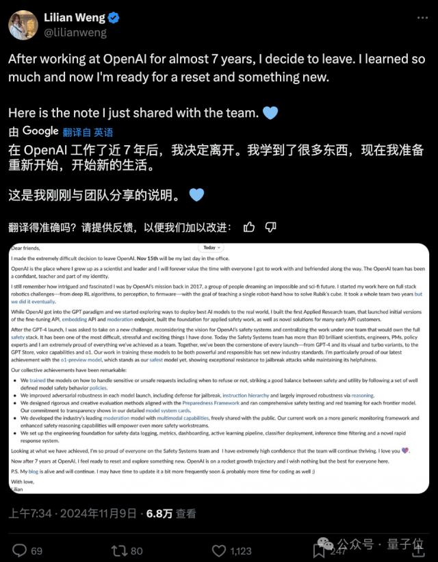 OpenAI华人VP翁荔辞职:北大同学,执掌安全,最近哔哩哔哩分享被热议。