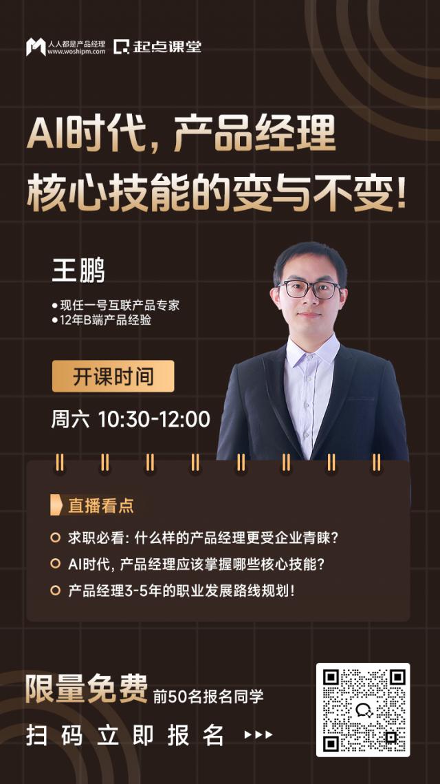 AI 时代,各种产品形式和业务的变化,使得市场对产品经理提出了新的要求。产品经理应该有哪些变化和不变?现在是入门级产品经理的好时机吗?如何在没有技术背景和学历的情况下成为产品经理?今天我们一起来讨论一下!