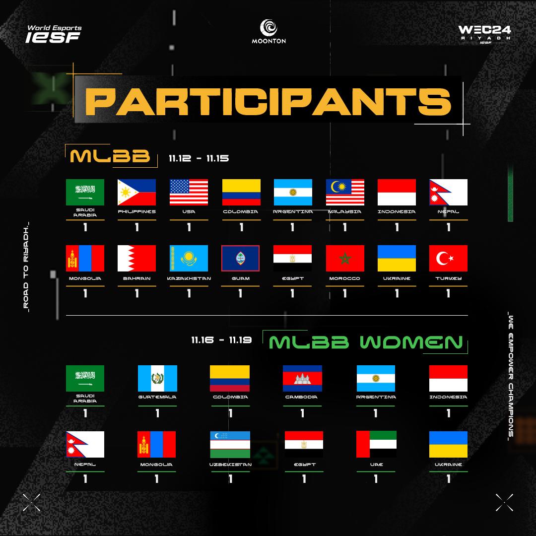 WEC2024见证了《胜利巅峰》的广泛全球影响力。赛事报名初期,来自88个国家的团队报名参加了男子比赛,49个国家报名参加了第一届女子比赛。经过几个月的国家和地区资格赛,最终有16支男子队代表各自的国家和地区晋升比赛,12支女子队参加了女子比赛。