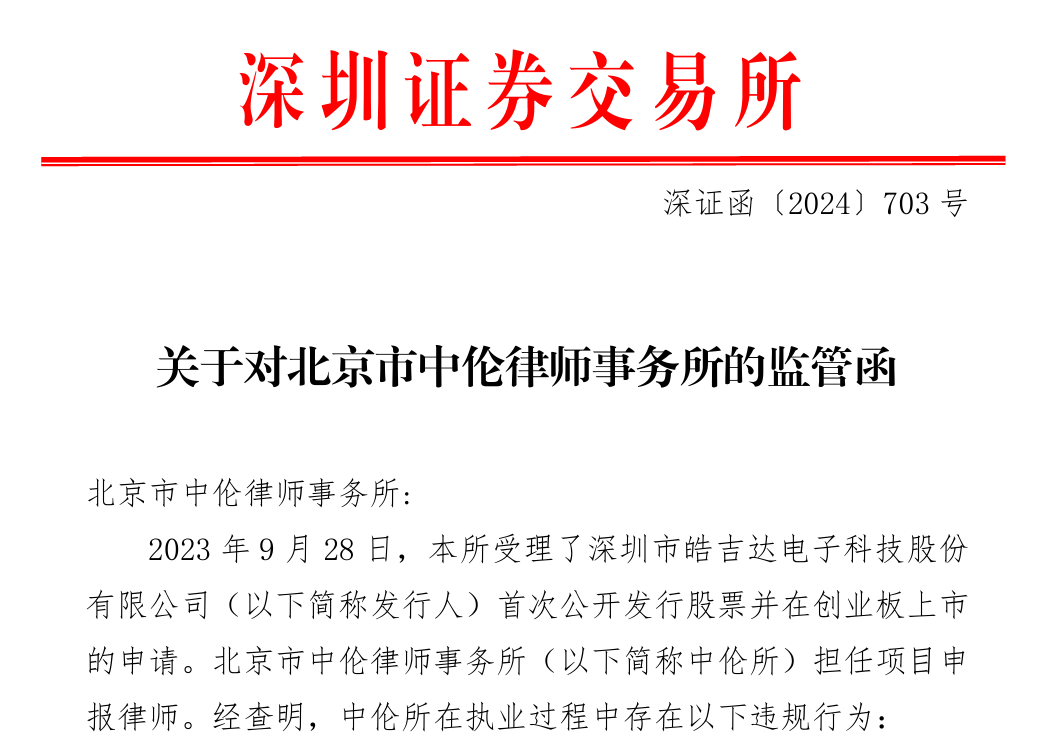 在“申请就是承担责任”的环境下,虽然郝吉达取消了申请,但中介机构仍然对项目中存在的问题负有责任。除了中信证券,深交所还对中伦律师事务所采取了书面警示措施。