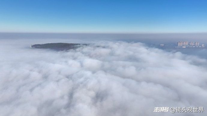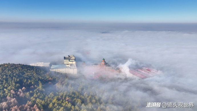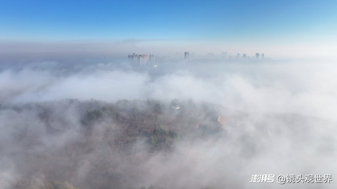 高层建筑在浓雾中只露出半个身体,屋顶仿佛漂浮在云端上,仿佛只要轻轻一跃,就能走进这个梦幻般的仙境。雾有时像牛奶一样粘,把一切都盖得严严实实;有时候像薄纱一样轻盈,让远处的风景若隐若现,就像害羞的女孩抱着琵琶半遮脸一样。