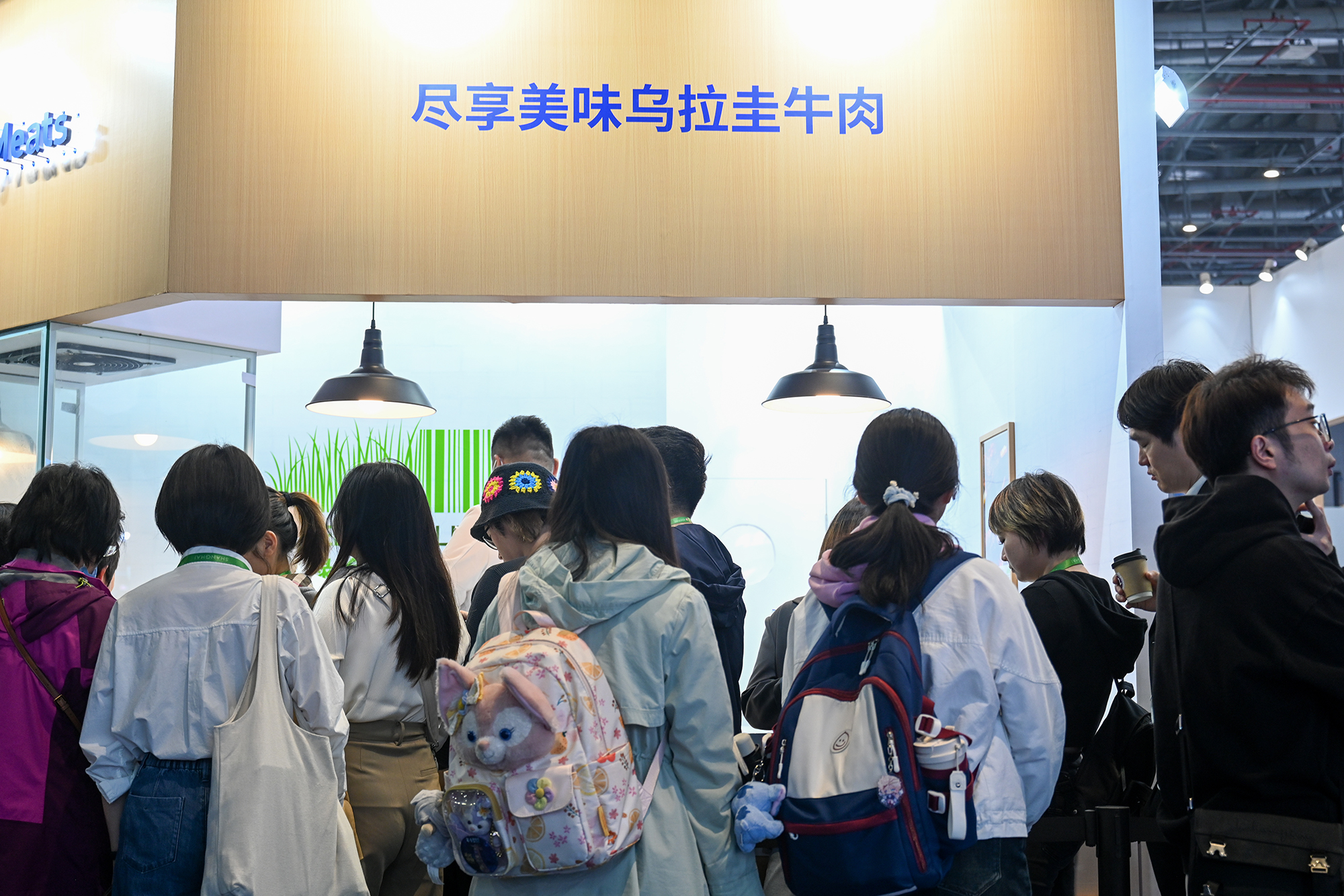 国家会展中心(上海)、乌拉圭牛肉展位于2024年11月8日排起了长队。本报记者 朱伟辉 图