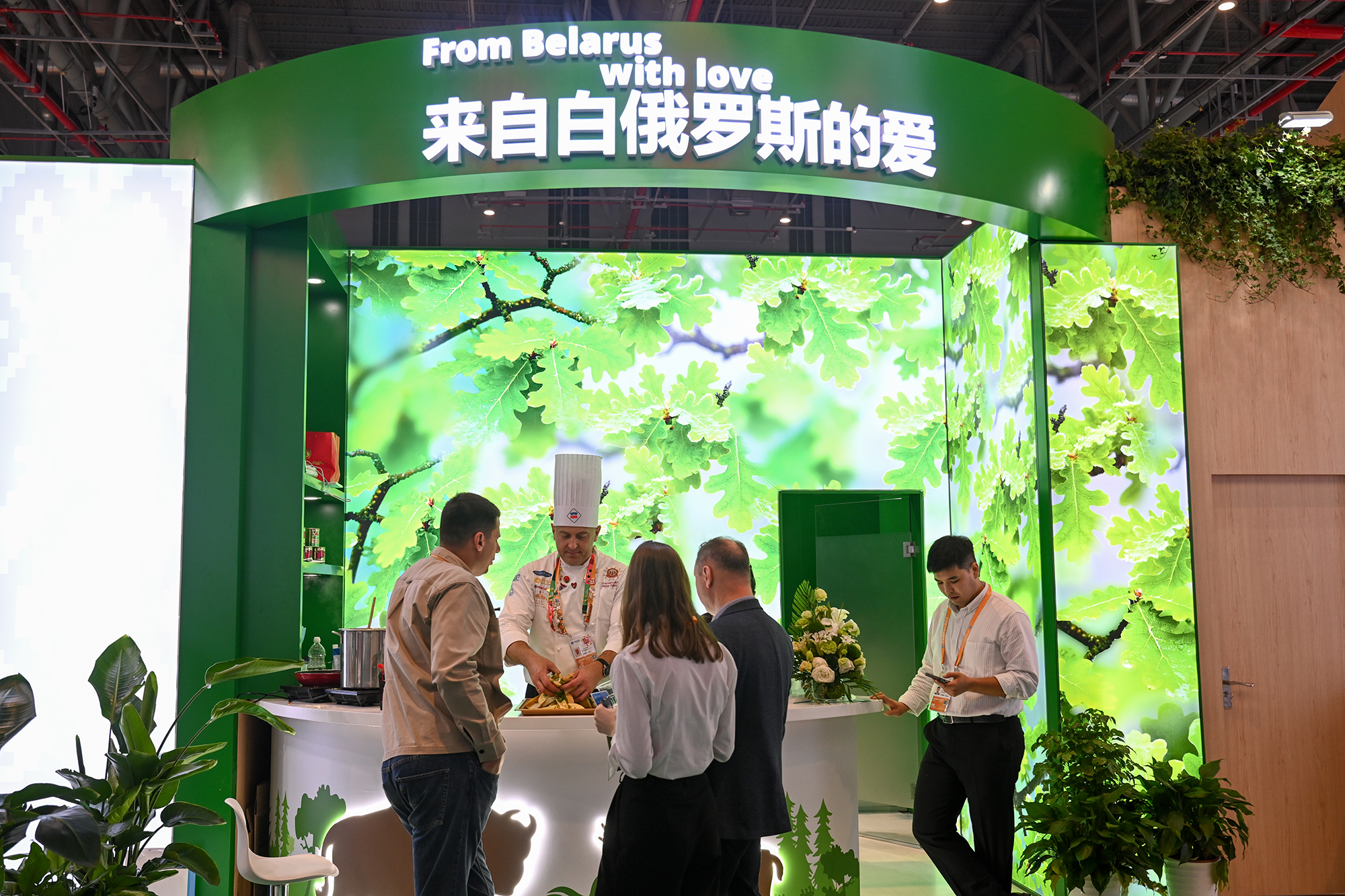 国家会展中心(上海),厨师于2024年11月8日在白俄罗斯展位做土豆。本报记者 朱伟辉 图