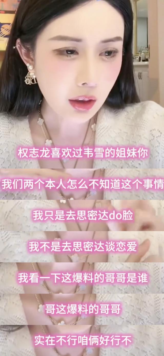 韦雪直播回应,说吃瓜吃自己:“姐妹们,权志龙喜欢你们。每个人都会改变这个标题。权志龙喜欢韦雪的姐妹们。我只是去了思密达。 o 脸部,不要谈恋爱。谁爆料我就和谁谈恋爱。”