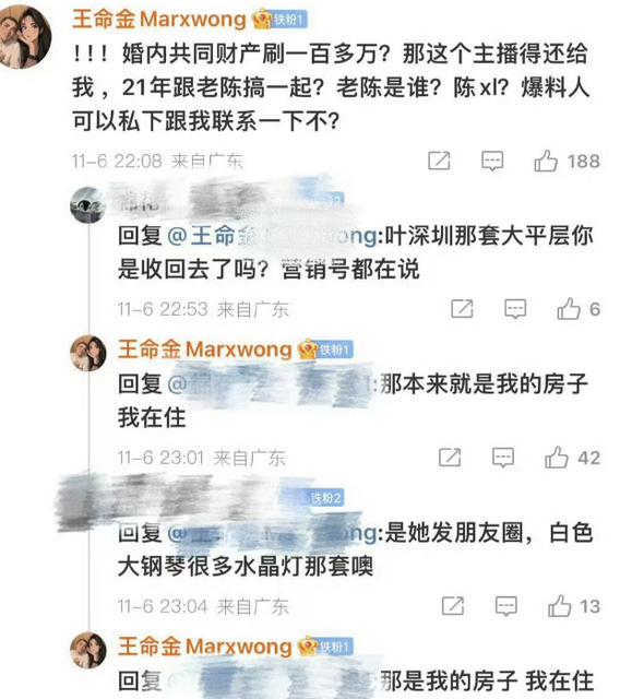在热搜了黄晓明和叶珂的分手信息后,有人爆料叶珂和前夫的婚姻存在期间,他们给了直播大哥很多钱,这让叶珂的前夫非常好奇是真是假,所以评论爆料者:“婚姻共同财产刷了一百多万?那主播就得还给我。”