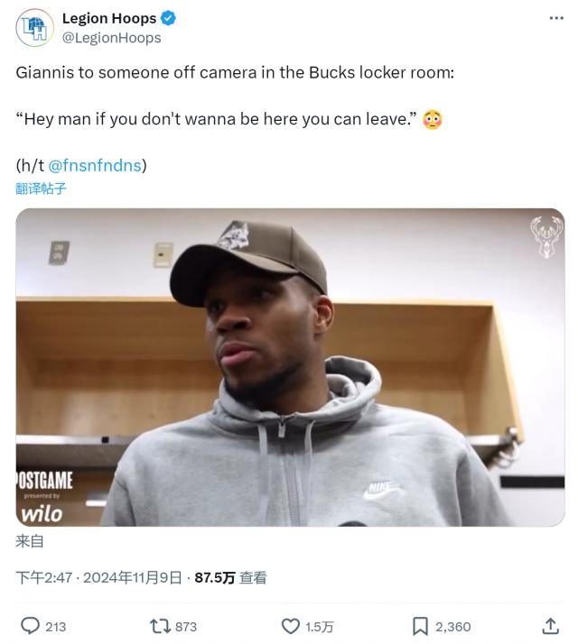 目前雄鹿 2 胜 7 负面,排在东部倒数第二,球队必须做出改变。赛后接受采访时,字母哥对旁边的人说:“兄弟,如果你不想留在这儿,你可以去!"不知他说的是队友还是记者…交易大门已经打开,你认为雄鹿应该送走谁?