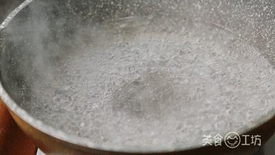 3. 锅中加入 300 ML冷水,加盐,香叶,八角,葱结,姜片和冰糖,大火烧开后倒出冷却。