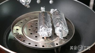 5. 锅里的水烧开,把鸡腿卷放进去,大火蒸。 10~15 几分钟后取出冷却。