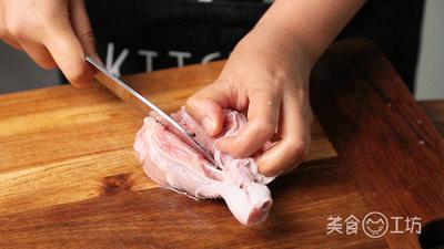 1. 鸡腿洗净,沿着鸡腿一侧切开,取出骨头。