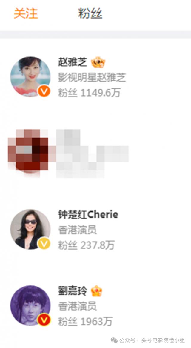 发哥的那个社交账号也是关注的 3 女明星:赵雅芝,钟楚红,刘嘉玲,都和他有过重要的合作。