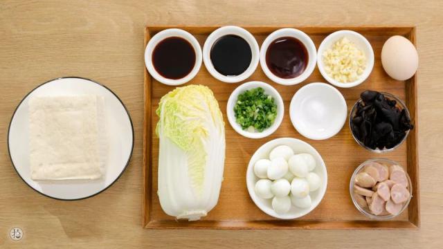 白菜 1 小颗鹌鹑蛋 12 颗 香肠(提前斜切成片) 2 根 生抽 2 勺(约 10g) 老抽 1 勺(约 5g) 耗油 2 勺(约 10g)盐 1 勺(约 2g)葱花 适当