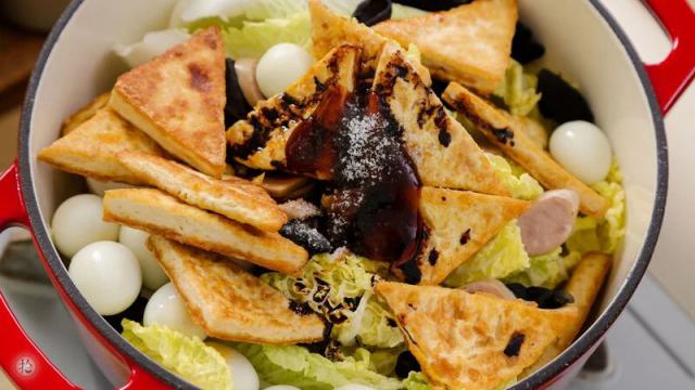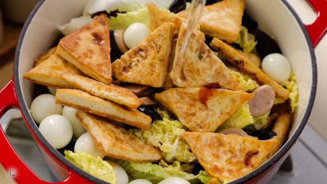 豆果美食大咖今天 @拾味父亲 教你做卷心菜豆腐锅。卷心菜光滑香甜,豆腐味道鲜嫩,再加上一些其他配菜,简单丰富。这个锅足够满足你的渴望,不管是加粉条还是米饭!