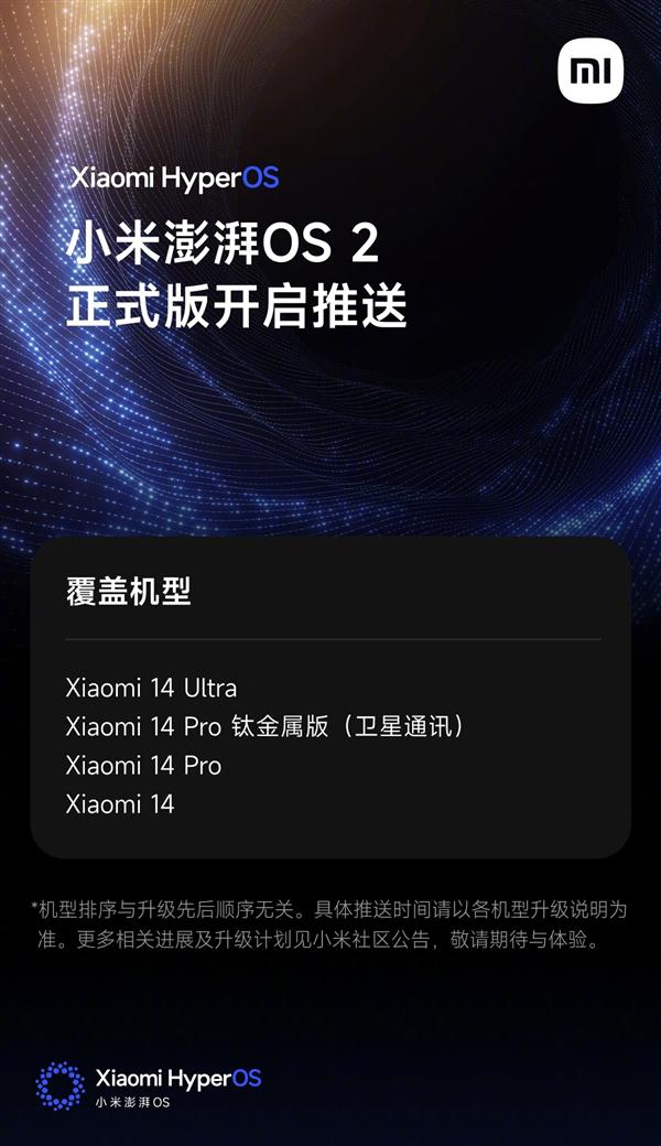 小米宣布澎湃OS 2正式版本开始推送:小米14系列率先尝鲜