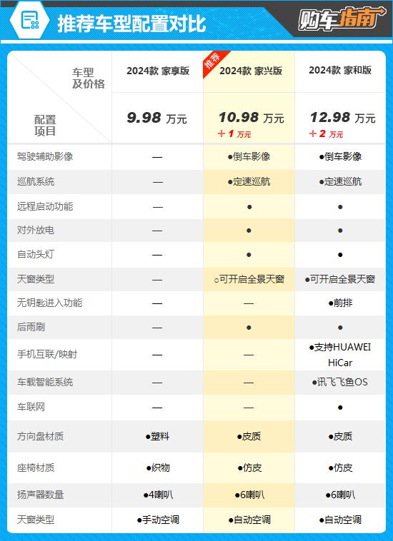 与推荐车型相比,高级家居版增强了 HUAWEI HiCar 移动电话互联,讯飞飞鱼 OS 许多智能设备,如智能系统和前排无勺进入。但鉴于目前智能手机的普及,当手机与车载蓝牙连接时,一个手机架可以实现上述设备的大部分功能。此外, 2 一万元的差价,性价比不高。