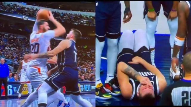 东契奇假摔一幕曝光!头发没有碰,但是捂着脸倒下了 连续遭到美媒怒喷:应该停赛五场