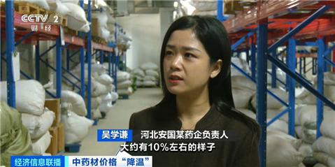 河北安国某药企负责人 吴学谦:我们大概有这个。 10% 例如,当归头片的价格下降了,产品价格下降了。 40% 上下。
