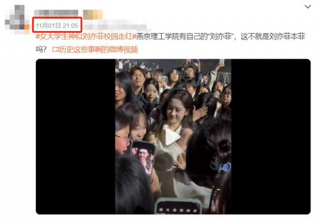 还有学生在学校现场大喊:我以为是刘亦菲真的来了。