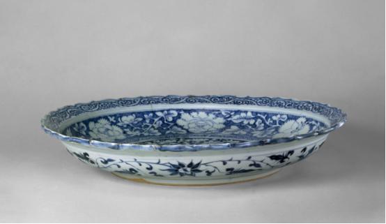 元 青花麟凤花纹菱花口折沿盘 藏在故宫博物院