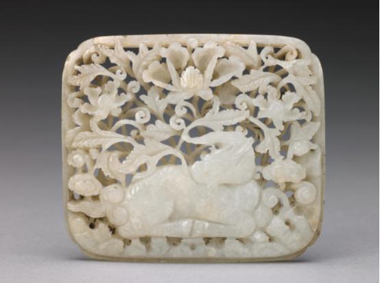 明 白玉透雕麒麟莲花纹镶件 藏在故宫博物院