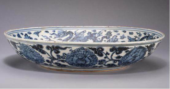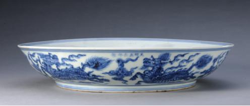 明 青花麒麟翼龙纹盘 藏在故宫博物院