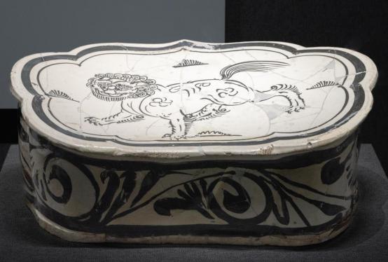 宋 白色地黑色麒麟纹如意形枕头 藏在故宫博物院