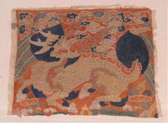 明 纳纱绣麒麟纹补子 藏在中国丝绸博物馆