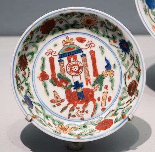明 彩色花卉麒麟纹圆盘 藏在故宫博物院