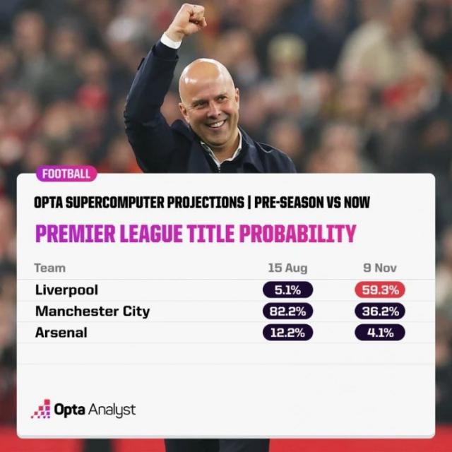 很明显,曼城现在有问题,伤病是影响,人员配备达到瓶颈是另一个原因。这些跟随瓜帅打国家的球员,现在受伤了,老了,曼城今年夏天在转会市场什么都没做,真的很尴尬。当然,利物浦的阵容并不完美,但现在红军伤病少,防守稳定,可以在积分榜上获得。 5 分优势。