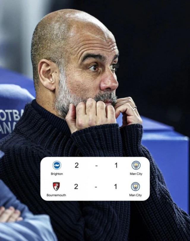 曼城的四连败始于联赛杯和热刺的比赛。当时人们认为蓝月亮只是遇到克星马失前蹄,很快就可以调整。他们从未想过一系列不可思议的记录会接踵而至——英超踢伯恩茅斯,曼城历史上第一次输给樱桃军团;欧冠踢葡萄牙运动,曼城直接被对手打败。 4 比 1 侮辱性;接着是和布莱顿的一场比赛,哈兰德是先进球,但是曼城还是被逆转了。