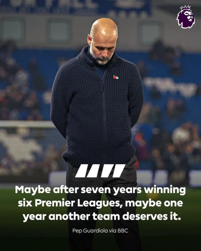 输给布莱顿后,连瓜迪奥拉都开始说令人沮丧的话:“我们必须努力工作,努力赢得比赛。下半场我们不能保持节奏。如果我们连续输了四场,我们必须迅速做出改变。艰难的赛程即将开始,但幸运的是,球员们回来后才开始。”在我们七年内赢得六个英超冠军后,也许还有一支球队值得一年赢得这个冠军。"