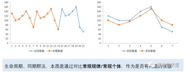 判断标准可以很简单,比如领导的指示,KPI 要求和过去同期的数据都可以作为标准。这些统称为简单标准。然而,在许多情况下,没有明确的指标趋势。 KPI 约束,甚至 KPI 达到标准,但趋势奇特,领导还是会觉得有问题。此时需要寻找其它参考。所以衍生出一系列的分析方法。