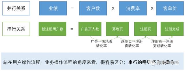 有必要建立一个完善的数据指标系统来描述数据。要建立一个数据指标系统,我们需要对数据指标之间的思维进行梳理。数据指标之间有两个基本思路:串行逻辑和并行逻辑,从而衍生出两种基本的分析方法:漏斗分析 & 指标拆解法。