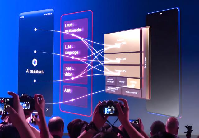 骁龙 8 至尊版可以在底层识别包括自动语音。(ASR)、大语言模型(LLM)、大视觉模型(LVM)以及全新的多模态大模型(LMM)支持多模态模型。这些模型通过异构计算得到支持。 AI 模型可以在高通 AI 不同的发动机核心运行。