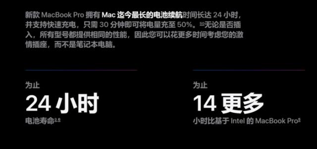 M4时隔半年 最后,芯片搭载在一起 MacBook 以家庭产品为基础。其优异的能耗体现 MacBook Pro 如虎添翼,现在 MacBook Pro 续航能力提高到了 24 与当时搭载的时间相比 Intel 芯片 MacBook 多了 14 小时!
