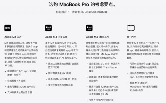 但是,这种升级让很多消费者在购买时陷入了纠结:面对各种各样的降价问题 M3 商品,M4 芯片产品有哪些变化,是否值得花更多的钱购买?14 寸和 16 寸的 MacBook Pro 又该如何选择?以下就让我们一起深入探讨。