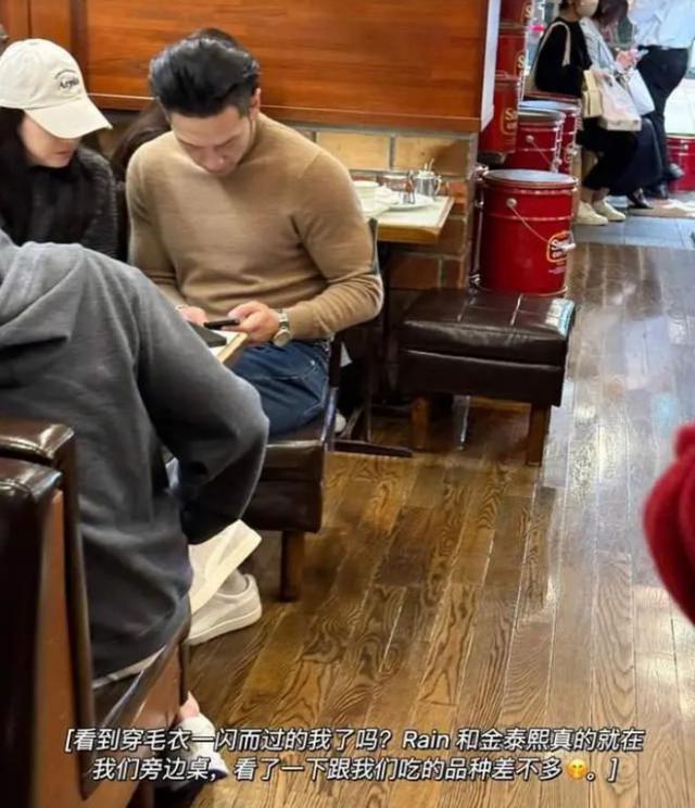 这对低调的夫妇在东京一家著名的咖啡店和朋友聚在一起,很多被偶遇的网友都称赞。 Rain 亲和力满分,金泰熙冰冻时代的美成为话题焦点。很多网友也慷慨分享了偶然相遇的图片,让这对明星夫妇的婚姻生活再次成为公众关注的焦点。