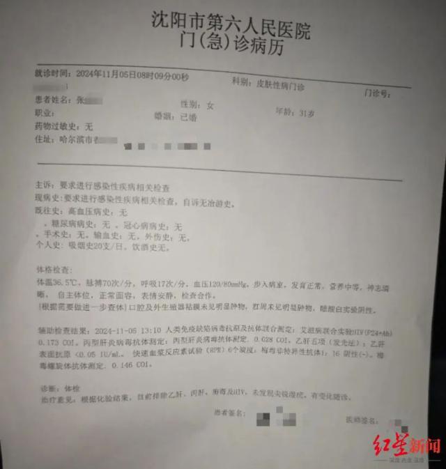 张女士告诉记者,舆论发酵后,他们先去口腔科检查,粘膜组织全部正常,没有梅毒、乙肝、艾滋病毒等传染病。“网友们不相信,所以我们去了沈阳第六人民医院做传染病检查,包括尖锐湿疣检查,结果很正常,就是不会有这种病。”