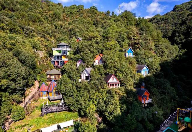 B&B以彩色悬空木屋为特色,打造了草屋、土屋、鸟屋、球屋、倒立屋等个性化空间。站在屋舍里,有一种穿越时空的梦幻感。