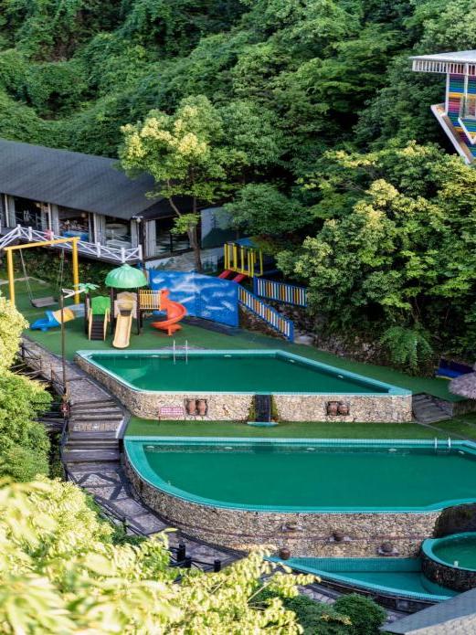 除了特色木屋,漫休谷还提供了大量的休闲娱乐设施。有引自泉水的露天游泳池,也有为儿童设置的游乐园。滑梯、秋千、攀岩墙、蹦床...每一个设施都充满了快乐。有时候乐队会在咖啡吧表演,带来视听盛宴。