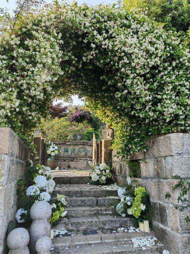 在花庭里,赏花是一件很重要的事情。春夏季节,花园里的花瓣绚烂夺目。秋冬季节,也很有意思。找个角落搭上天慕和桌椅,泡一壶热茶,晒晒太阳,聊天,看风吹竹海,也是一件很奇妙的事情。