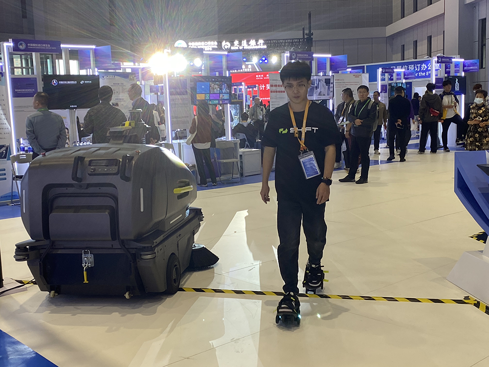 来自美国创业公司的月球鞋(也称为机器人鞋)在本届中国国际进口博览会创新孵化区进行了现场演示。本报记者 俞凯 图