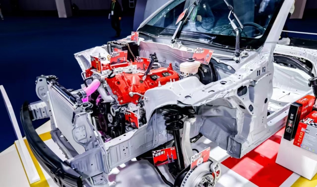 第一次参加中国国际进口博览会的途虎汽车维修将工厂搬进展台,一辆拆开的汽车展示了各种汽车维修的新产品。品牌提供图片