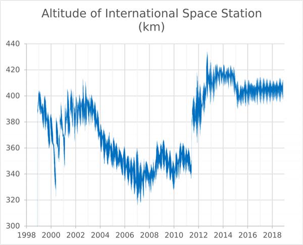 由于大气的阻力,国际空间站的轨道高度平均每月都在下降。 2 1000米,路轨保持在过去,要么使用星号服务舱上的两个主发动机,要么使用俄罗斯进步号飞船和与之对接的美国天鹅座飞船。