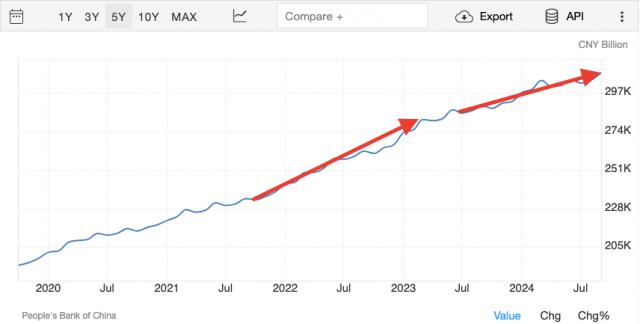 一是近年来央行不断降息,发行财政债券,所以目前的环境是一个“大放水”的环境;另一种是财政决定从事万亿规模的债务化,所以经济政策极其宽松。