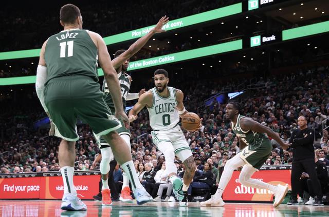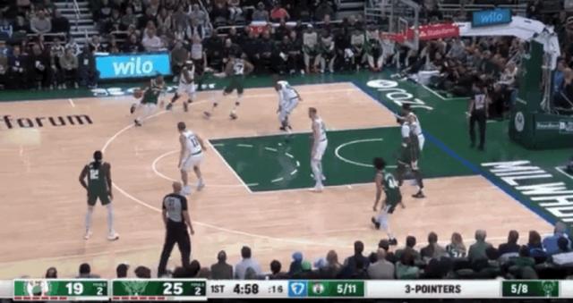 NBA常规赛:字母哥43 13绿军逆转雄鹿 塔图姆31 12罚球取胜
