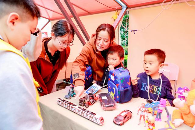 同时,还有一系列丰富的活动,如亲子公益、音乐互动、亲子游戏等。学校的孩子变成了志愿者,把捐赠的物品、书籍、文化创意产品放在自己的展台上,希望通过这些慈善事业,给社会一份爱。