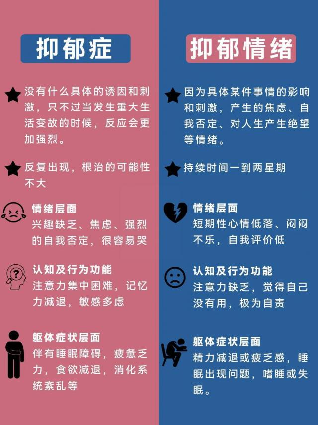 虽然“抑郁症”已经完成了社会观念的构建,但很多人对“抑郁症”的认知存在偏差。比如我们分不清“抑郁症”和“抑郁症”的区别。其实几乎每个人都会有“抑郁症”,但是“抑郁症”有一套严格的判断标准。它们在疾病水平、持续时间、功能障碍、体征和生理疾病等方面都有所不同。