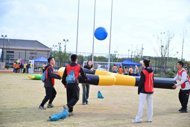 11 月 9 一天下午,华东师范大学第五附属学校的操场变成了一片欢乐的海洋。各种有趣的体能项目,如龟兔赛跑、俄罗斯方块、十拿九稳等。,让前来参加的市民玩得很开心,现场一个接一个地笑着给油。